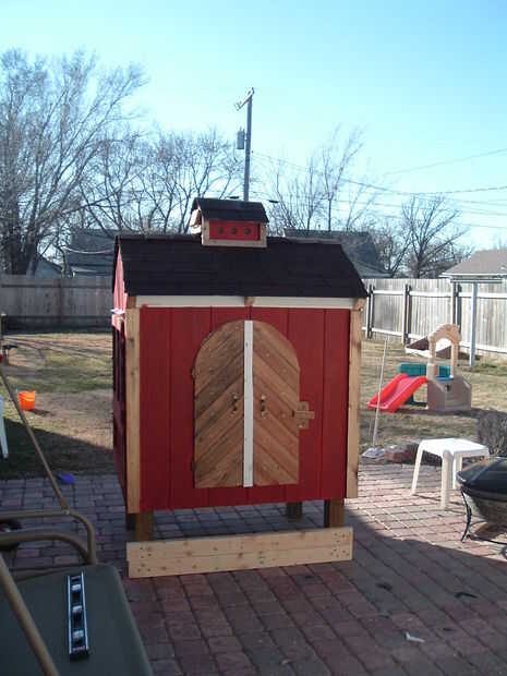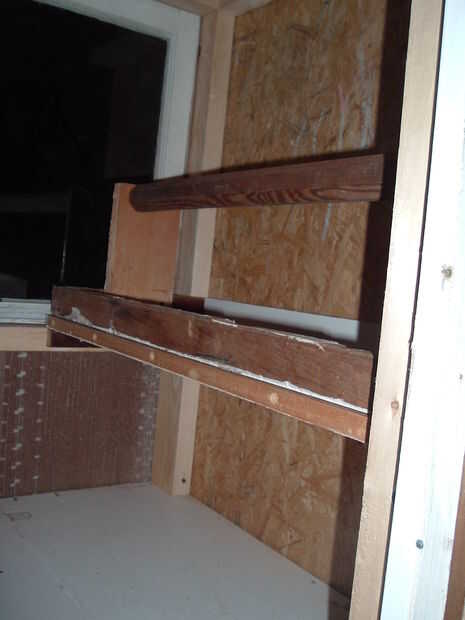 Hacer una percha de 2 x 4 con los bordes un poco redondeados. Bajo la percha hacen un lugar para el impulso recoger. Esta zona de gallinero suele ser el único lugar que tiene caca en mi tonel y hace la limpieza fácil. (No utilice madera tratada).