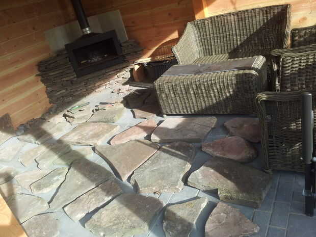 Bueno ahora que la chimenea es totalmente funcional se pueden poner las piedras ornamentales. Las piedras que utilizan se llaman losas aquí en Holanda. Son más bien expansivos para comprar. Para un gran uno usted paga hasta 50 euros por piedra. Los más pequeños van de 10 a 20 euros. Esto se acumula muy rápido!