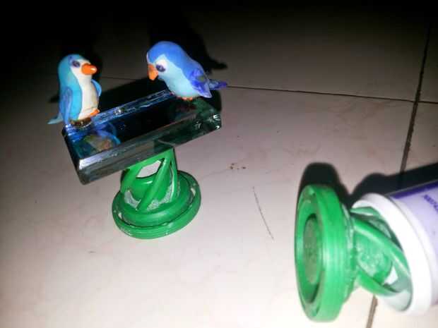 Para las aves que solo mi imaginación y un par de pájaros azules, en un pequeño trozo de vidrio ver pegado en una tapa de la botella de medicina para aparecer como un baño de aves.