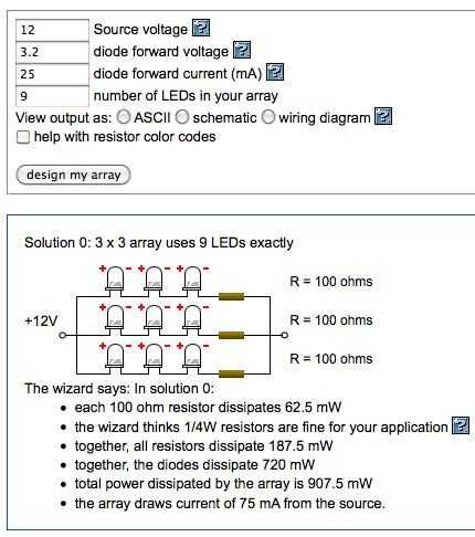 * La calculadora de matriz de LED se puede encontrar en http://led.linear1.org/led.wiz