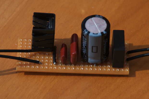Un regulador de voltaje simple: Hay regulador de voltaje muchos ICs disponibles que se fijan en una salida de 12v manteniendo la cuenta componente y complejidad hacia abajo. Usted puede construir un simple regulador 7812 basado en edad buena placa perforada con un mínimo alboroto. Mio requiere sólo una rotura en las tiras de cobre y un puente! Incluso incluye su propia rectificación y alisado etapas!