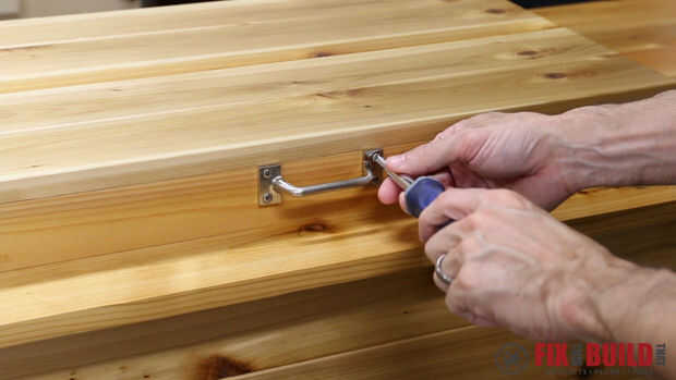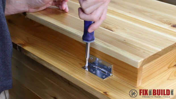 Coloque 3" utilidad bisagras en la parte posterior de la parte superior, una manija en la parte delantera y un abridor de botellas en la pierna.