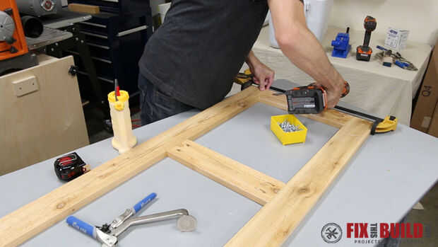 Montar el marco superior de 2 50" 1 x 4 y 3 13-1/2" 1 x 4. Apertura izquierda debe encajar su enfriador. Montaje con tornillos de agujero de bolsillo