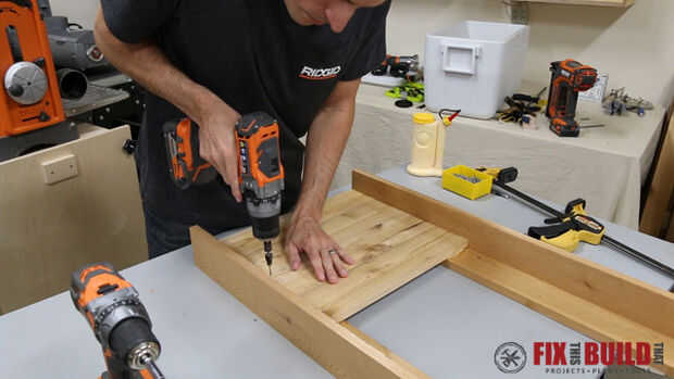 Corte 8 lados a 16-1/2" y el pegamento y tornillo 4 tableros juntos entre un par de piernas. Repita para el otro lado.