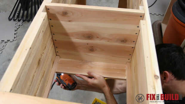Cortar 5 15" piezas y 2 17-1/4 grapas y montaje a la parte inferior del depósito de la bahía que forma la parte inferior.