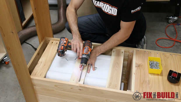 Corte 3 1 x 4 de 15" y sostenga hacia abajo en la parte superior y garantizar a los lados con los agujeros de bolsada.