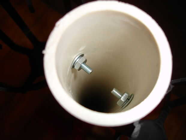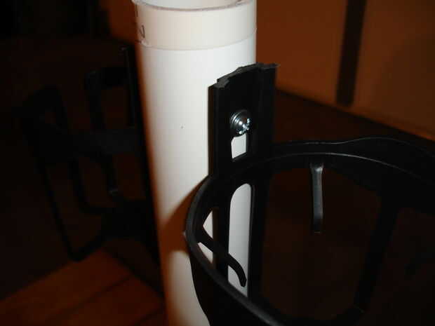 4. Perfore 2 agujeros de 1-3/4 pulgadas desde la parte superior del poste en los lados opuestos y lo suficientemente grande para los pernos de montaje que se utiliza para montar el portavasos.