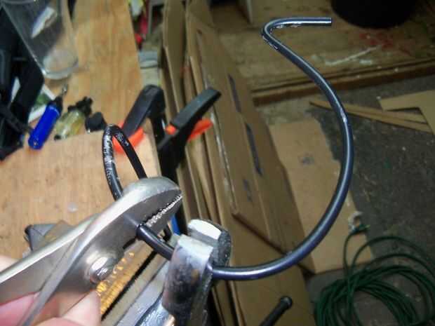Con las dos pinzas, doble la tutela en una curva más apretada hasta que hace un bucle. Usted puede hacer el lazo un poco más que el tamaño del cubilete, a Sostenga un poco más firmemente.