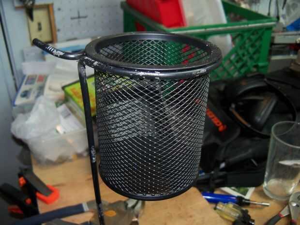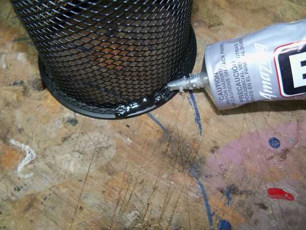 Aplique una tira de resina epóxica o jb weld (utilizo E6000 para casi todo, es todo tipo de impresionantes) debajo del borde de la Copa del lápiz. Luego colocar la taza en la parte superior de la tutela ha.