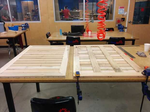Usando 8 1 "x 3" x 25 "stock de palets de madera, corté 3" vueltas medio normales en un extremo y a inglete medio-vueltas en el otro. Me uní a las piezas en las vueltas medio regulares (encolado y fijación) para crear piezas superior e inferior 47" de largo.