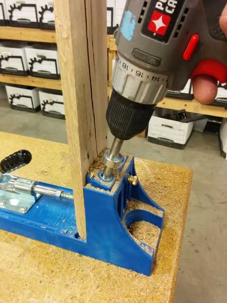 También corté dos soportes de 1/2 "x 3" x 41 "stock plataforma para cada mesa, uniéndolas en la parte inferior de la tabla con tornillos de bolsillo y luego a los listones de la mesa con clavitos.