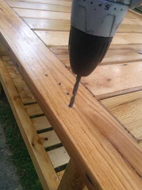 Las patas de la mesa y las bisagras se unen a las tapas de tabla utilizando las tuercas en T de 1/4". Después de taladrar y avellanar los agujeros para las piernas, apliqué algunas epoxi JB Weld y condujo las tuercas en T en las piernas con un pequeño martillo.