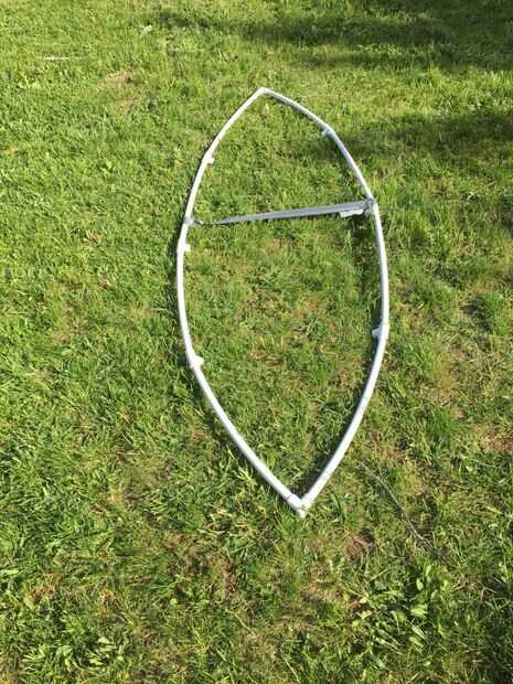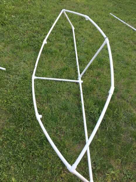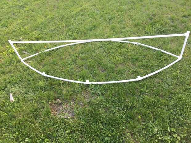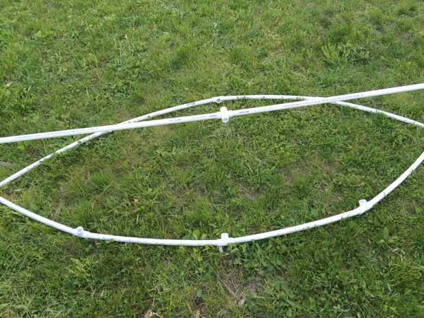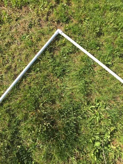 conseguir una camiseta de esquina y poner las piezas largo 7,5 pies en él entonces haz otra tee esquina y pegar el otro lado de la tubería de pvc en él. (su supuesto doblar :)) Tuve que envuelva alguna cinta alrededor de la mitad de modo que el tubo de PVC no sale de la t de la esquina.