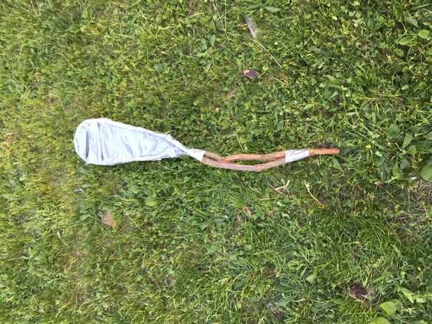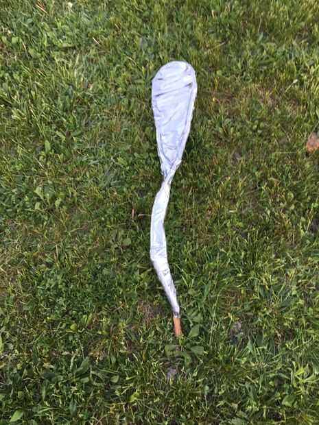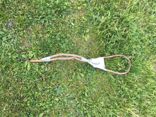hacer un lazo y cinta donde los dos extremos del asa conocer luego envuelven todo (excepto una pequeña parte de la vid en el extremo) en la cinta del conducto. puesto 25 en el trozo de tubo de PVC en la parte no conducto cinta entonces añadir una t al final de la tubería de PVC