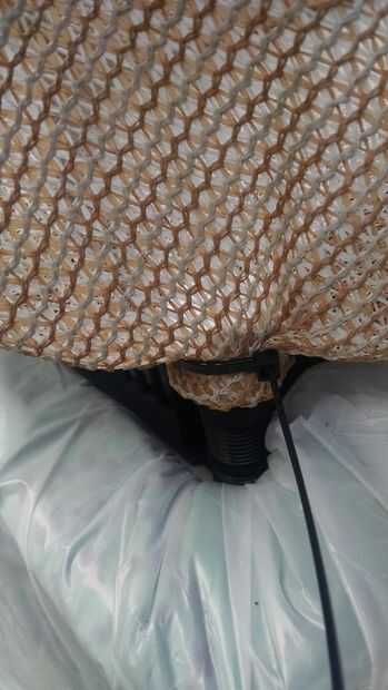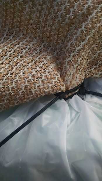 Empuje la boquilla a través y asegure la tela con una amarra dentro de la almohadilla de splash.