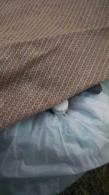 Recortar las tarjetas verticales de riego para las boquillas queden al ras con la parte superior de la almohadilla. Coloque el paño de la cortina centrado en la cubierta splash y doblar la esquina para revelar la posición de la boquilla. Doblar el paño varias veces y use un encendedor o la antorcha para fundir un agujero alrededor del 75% el tamaño de la boquilla.