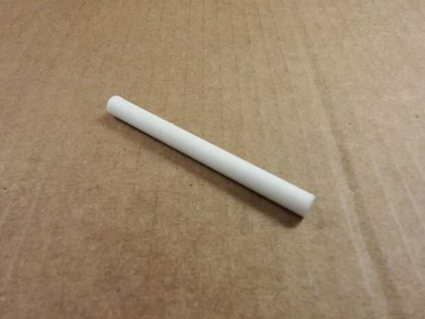 A continuación, cortar la varilla de fibra de vidrio por lo que se extiende más allá de los lados del Monte alrededor 1" en cada lado. Una nota sobre fibra de vidrio de corte; Me pareció útil para envolver el área del corte con cinta de enmascarar antes del corte y aplicar pegamento en los extremos inmediatamente después del corte para evitar que se deshilache. También puede usar una máscara o mantener la varilla cuando cortar para reducir la posibilidad de inhalación de polvo de fibra de vidrio.