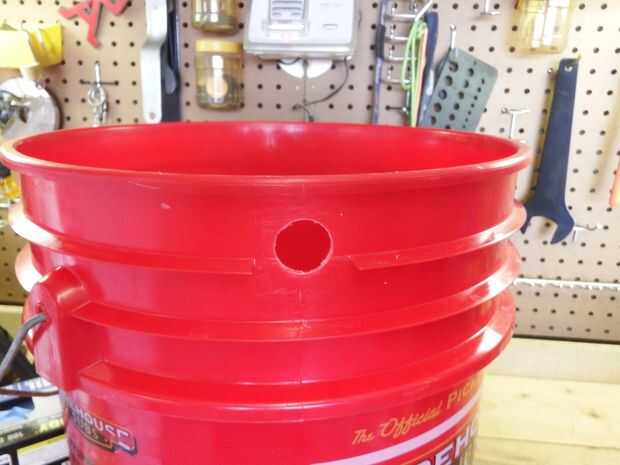 Ubicar un área de aproximadamente 1-1/2" por debajo de la parte superior de la cubeta de 5 galones para montar la válvula. En mi caso fue en una cresta en el cubo para que un pequeño recorte era para hacer el área plana suficiente para perforar el 7/8 orificio para la válvula. Conecte lo 3" varilla y flotador bola de la válvula y montaje por el orificio con la tuerca de la válvula. La conexión final es el conector de doble manguera hembra así que usted puede conectar la manguera de jardín cuando esté listo. Prueba del flotador de bola para la libre circulación en el cubo, a veces tienes que girar hacia el lado un poco.