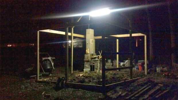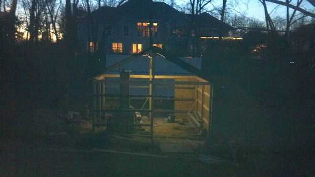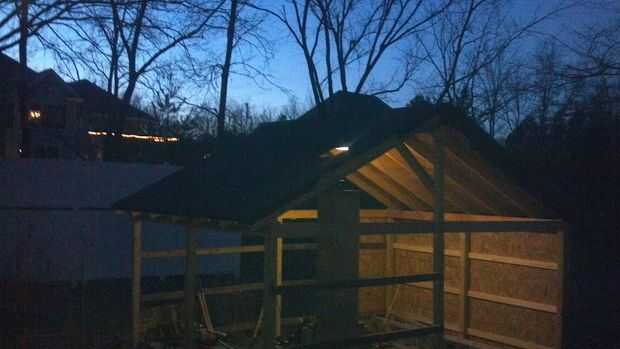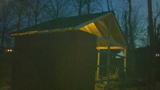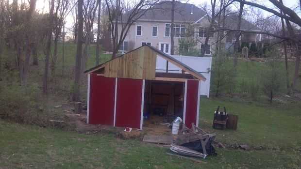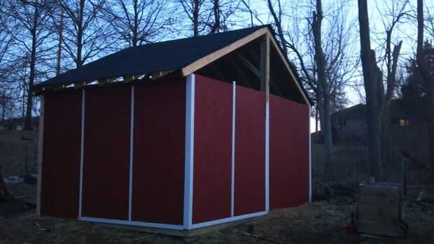Hemos construido un cobertizo. Lo llamamos nuestro galpón. En lugar de sólo un edificio de almacenamiento de metal débil, decidimos construir algo duradero y agradable en nuestro patio trasero para guardar bicicletas y herramientas. El costo de kit d