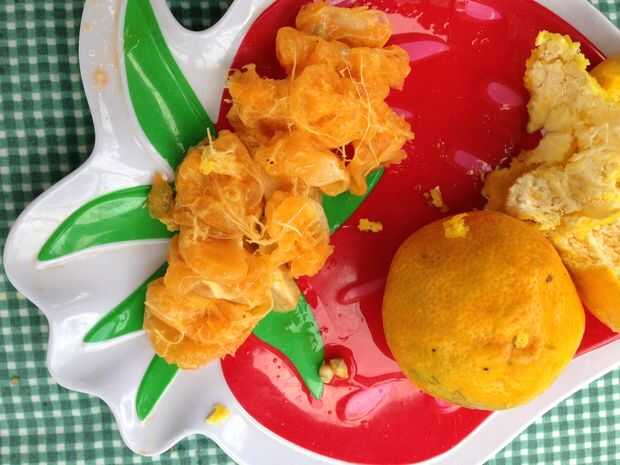 Recoger las semillas y corteza de las naranjas, que exprime. Coloque la pulpa a un lado para el siguiente paso.