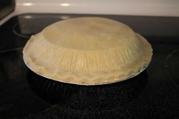 Apriete juntos todos los bordes y meter algunos agujeros en la parte superior con un tenedor.
