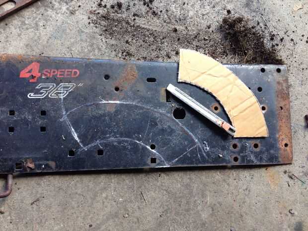 Hice una plantilla para un bafle semicircular bloquear las llamas donde el mango de sartenes proyección de la estufa. Yo quería que haya suficiente espacio entre los orificios de los bordes y el deflector para mantener el flujo de aire pero no demasiado alta por lo que llega a la bandeja