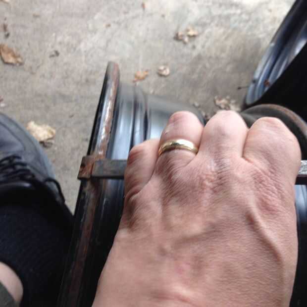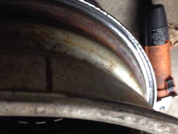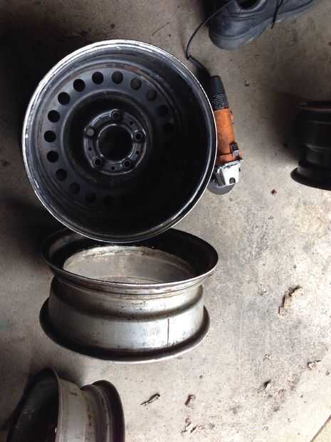 Después de yo suelo el interior de las llantas de 15" y el exterior de las llantas de 14" por lo que pude soldarlas juntas...