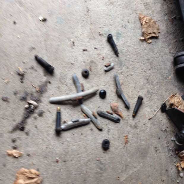 Éstos tenían el pesos de la rueda vieja moda plomo. Un cincel y un martillo quitar estas bastante rápido. Podría utilizarse un cuchillo para sacar los vástagos de las válvulas pero desde que tuve el cincel en la mano la utilicé para cortar demasiado.
