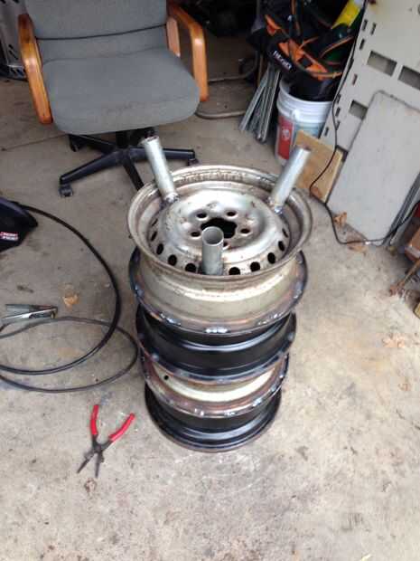 He utilizado un trozo de tubería de EMT 1 1/2 y cortar un par de pulgadas de ~ 6 piezas. No mido, yo solo corte lo miraba proporcionalmente adecuada y hace tres de la misma longitud.