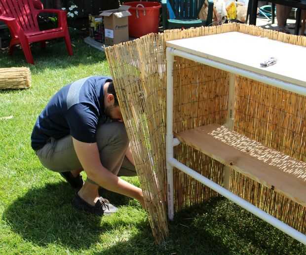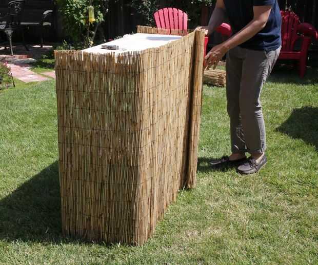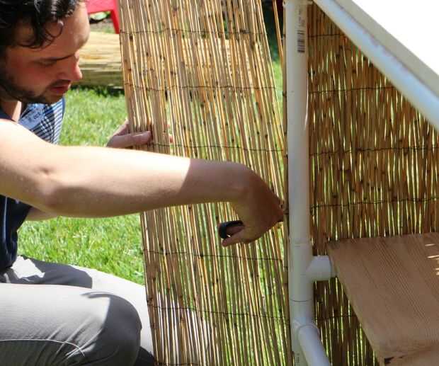 Una vez que haya terminado de poner ataduras de cremallera en la esquina opuesta de la espalda, rollo la caña restante detrás en sí mismo, creando una capa doble de caña. Esto crea un más substancial, menos ver a través, frente de la barra.