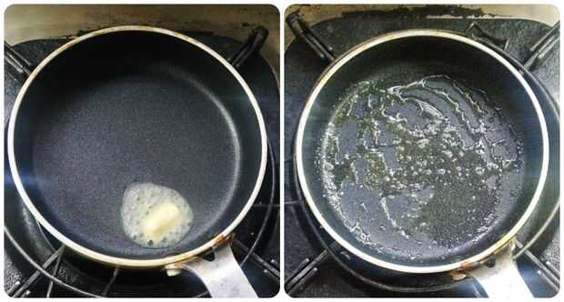 Tomar una sartén, no pegajosa, añadir un poco de mantequilla o aceite (no más de 1 cucharada) y ponerlo a fuego medio.