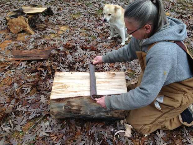 Lo sentimos, aunque tenemos una sierra de corte transversal de dos hombres, la motosierra fue la herramienta de elección para rough-cut el resto.