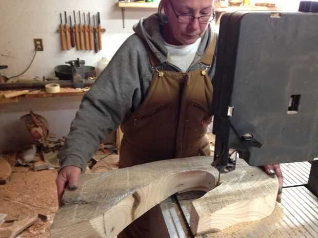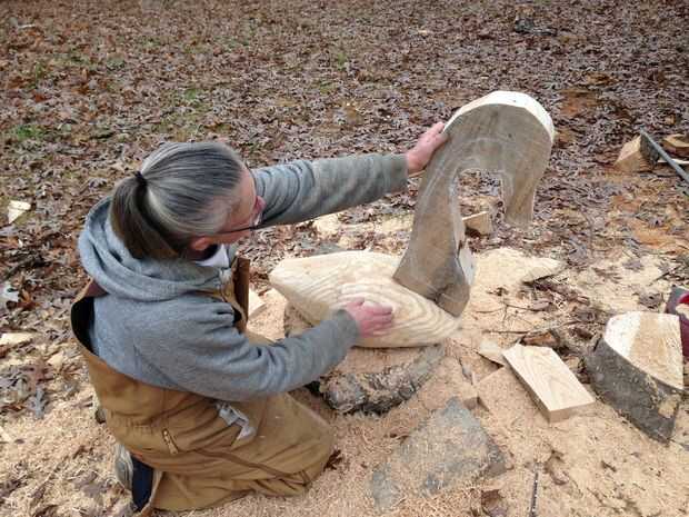 Con la motosierra a rough-cut el cuello y a la Sierra de cinta para darle forma. ¿No es ella bonita?