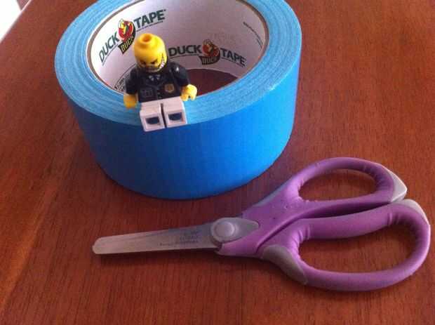 Así que vas a necesitar: conducto de cinta, tijeras y una persona lego