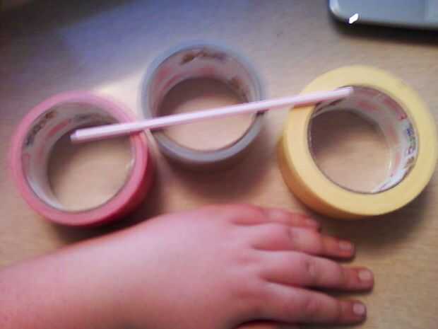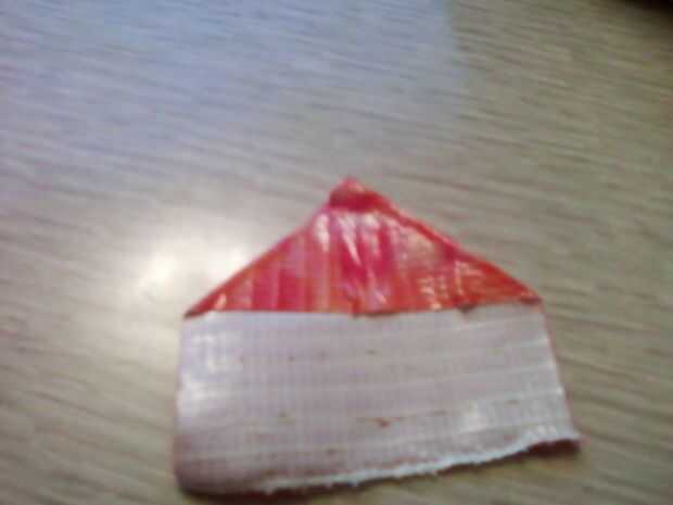 Se trata de una cinta de seis color rosa. Es muy fácil de hacer y puede hacer variantes de este con menos colores. Si usted tiene sólo dos o tres tipos de cinta del conducto, no es problema. Sólo tienes que seguir estos pasos, y usted puede conseguir