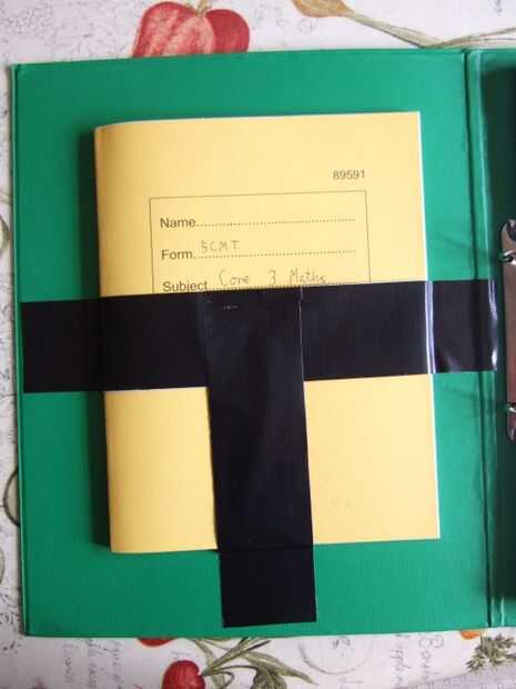 tener un cuaderno de notas es una buena idea, pero mis maestros siempre están dando hacia fuera las hojas de A4, así que tengo una carpeta A4 para cada tema. Me gusta mantener mi notebook en allí también, pero mantuvo cayendo hacia fuera, así que aquí está mi solución...