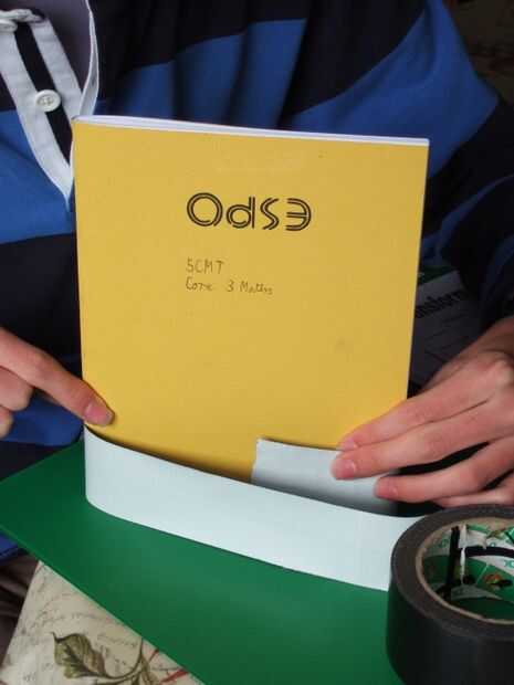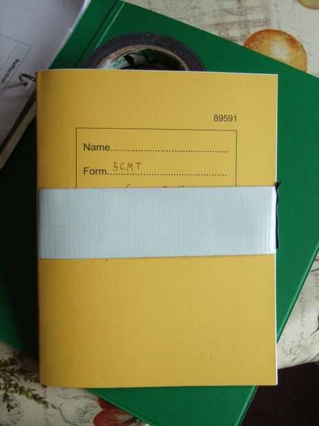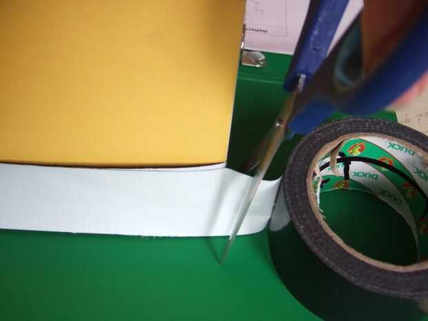 Envuelva la cinta alrededor del libro, como se muestra, con cierta holgura y 5-10 cm extra para pegar. Pegan a los extremos y cortar.