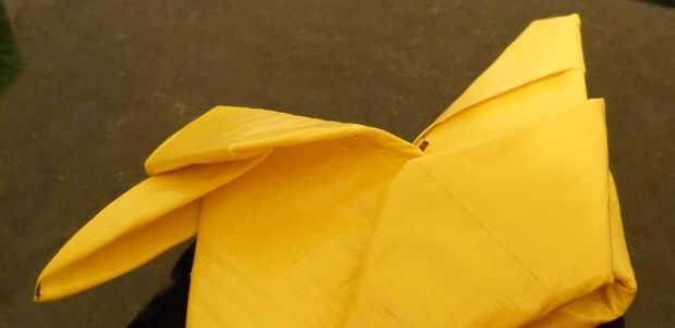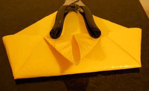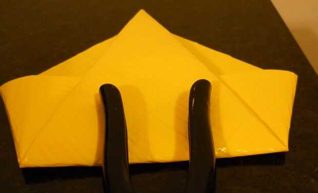 6. Levante la cosa entera y doblar por la mitad para formar dos mitades de un pato