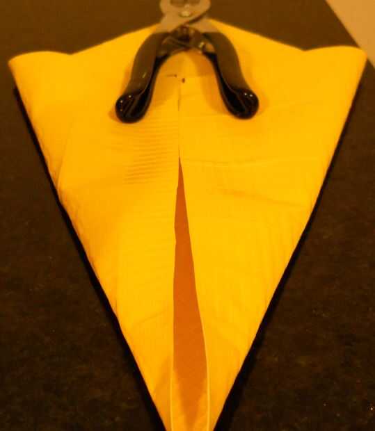 3. Doblar el punto largo detrás otra vez para que el doblez sea incluso con las capas por debajo de