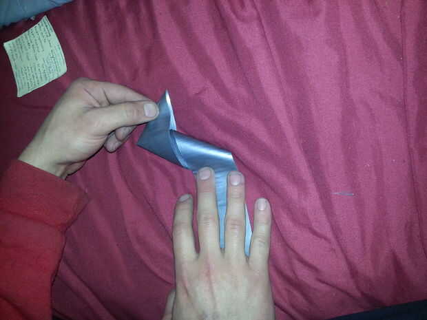 Yo van a doblar cada tira enfrente uno del otro.