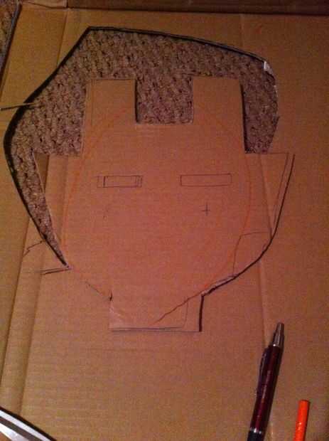 Que usted cartón y traza su cabeza y luego dibujar el frente de hierro mans helment, trazar y cortar los ojos en la cartulina