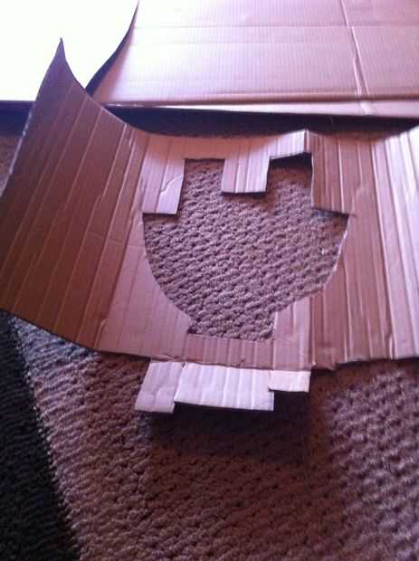 Trazar la cara sobre otro trozo de cartón, recórtalo y doble para doblar y cortar las tres piezas en la barbilla y la cinta.