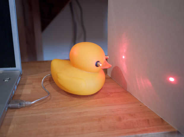 Este pato de laser USB particular fue enviado hacia fuera como un presente en el intercambio de regalos de Instructables. Esperamos intercambios de regalo futuro en el futuro así que puedo enviar objetos más dudosos a la gente que no he conocido nunca.