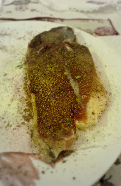 2 cucharaditas pimienta blanca sobre el pecho. Â he utilizado negro porque eso es lo que tenía.