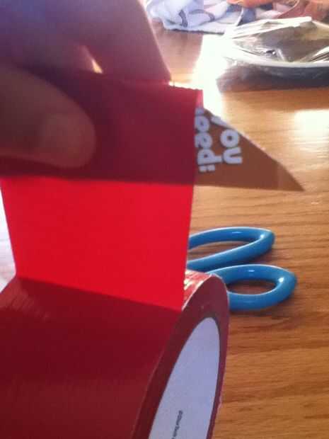 Esto es lo que se verá como cuando estamos acabadosPaso 1: fuentes de para hacer este arco necesita duck tape, regla y tijeras.Paso 2: Hacer el arco tomar dos 3 pulgadas piezas de pato con cinta y ponerlos juntos (pegajoso al pegajoso)Luego, corte un