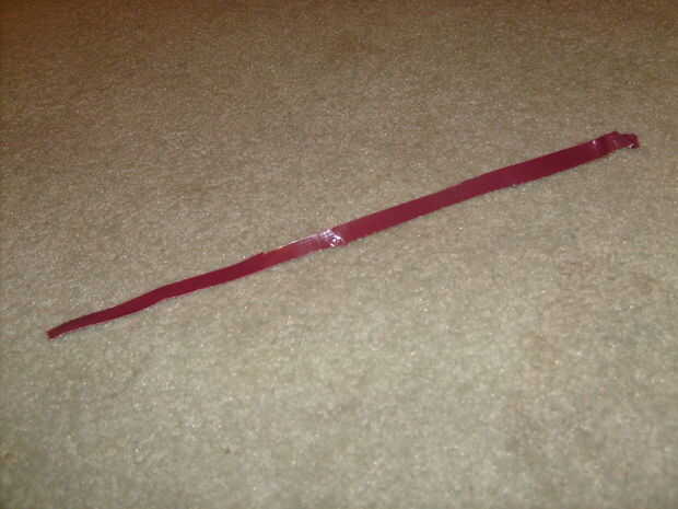 Usando el otro color de cinta, rasgar tiras delgadas de cinta del conducto.