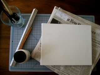diario (he utilizado una edición del sábado y el domingo del NYT), 8 "x 10" lona, regla, medio mate, cepillo de la esponja, lápiz, regla, toallas de papel y una superficie de trabajo limpia.