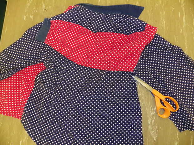 Cortar las camisas en las costuras. Guardar los botones para otro uso. Cada sección del hierro.