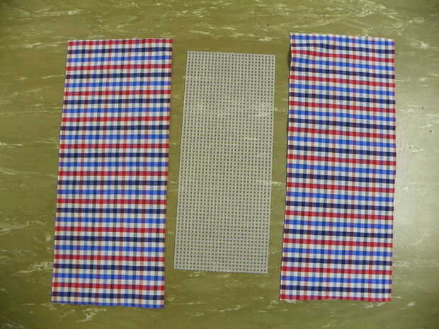 Cortar un trozo de lona plástica 4 "x 9 1/2". Corte 2 piezas de tela 6 "x 12". No importa qué tejido es utilizado en este, se colocará entre la bolsa y la guarnición. Prender las 2 piezas juntas, cosa a lo largo de los extremos largos y uno de los extremos corto. 1/2 subsidio de costura. Lugar plástico lona interior y coser la abertura cerrada.