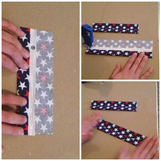 Para cada pieza, doblar los extremos del largo hacia arriba (similar a la que dobla en tercios) y encolado con pegamento caliente.